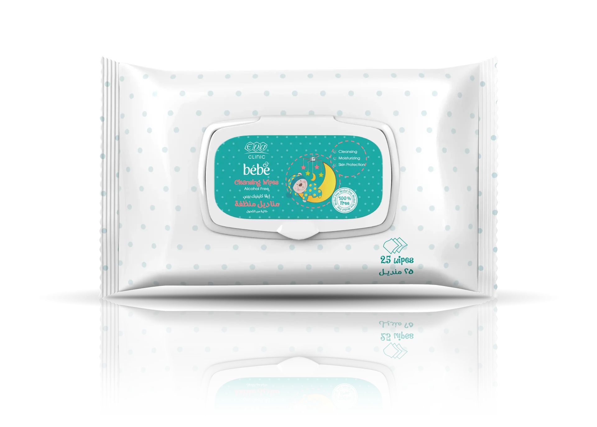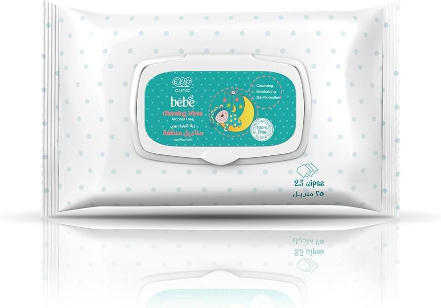 مناديل مبللة لطيفة من ايفا بيبي لتنظيف بشرة الطفل بلطف وفعالية، مع تركيبة لطيفة تحافظ على نعومة البشرة وتحميها من الجفاف والتهيّج.