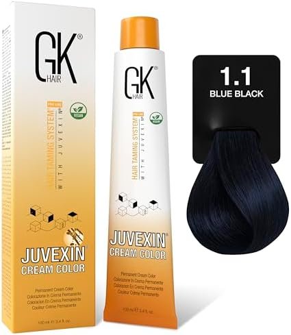 صبغة شعر جي كي (GK Hair) – اللون 1.1 “Blue Black” هي صبغة شعر بالكريمة دائمة تمنح شعرك لونًا أسود غامق مع لمسات من الأزرق البارد لإطلالة أنيقة وعصرية تختلف قليلًا عن الأسود التقليدي.