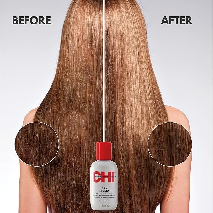 سيروم CHI Infra Silk Infusion 59 ml هو سيروم علاج للشعر يُترك على الشعر يمنحه ترطيبًا، تغذية، حماية من الحرارة ولمعانًا حريريًا — مناسب للاستخدام اليومي أو قبل التصفيف، ويساعد على تقليل الهيشان وتحسين مظهر الشعر بشكل عام دون أن يثقل خصلات الشعر.