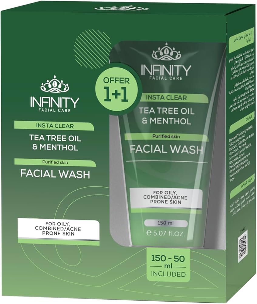احصلي على بشرة نقية وصافية مع إنفينيتي 2Q غسول انستا كلير 150+50 مل، تركيبة فعّالة تنظف البشرة بعمق، تساعد على إزالة الشوائب والزيوت الزائدة، وتمنحك إحساسًا فوريًا بالانتعاش دون التسبب في جفاف البشرة.
