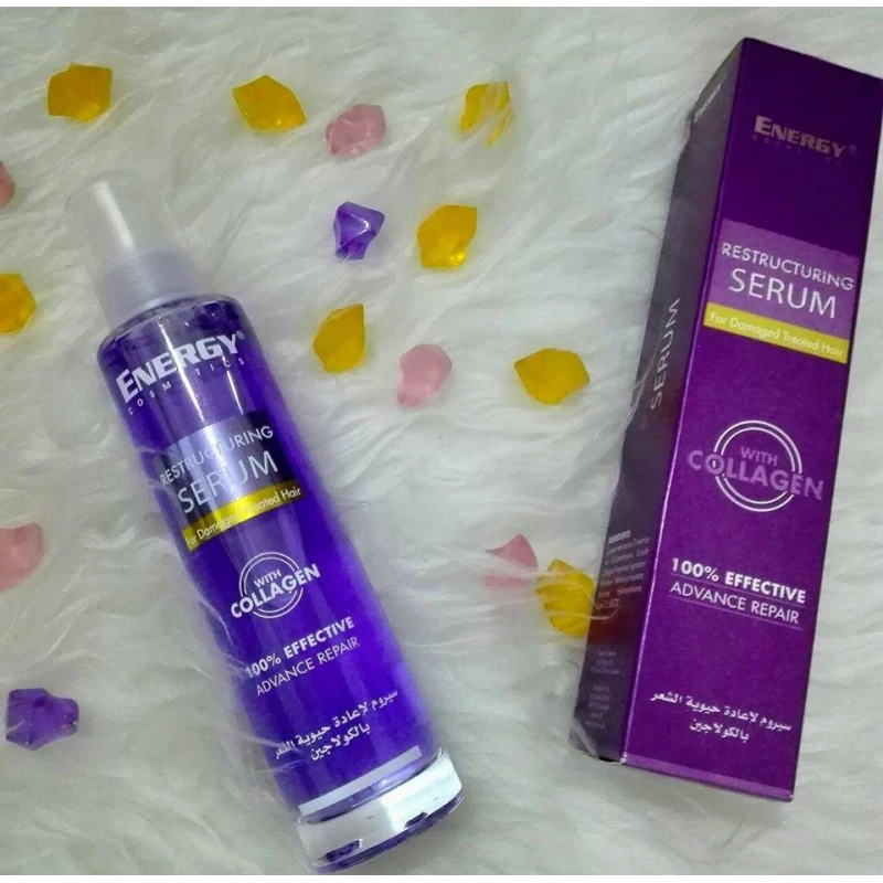 دلّلي شعرك بالعناية الفائقة مع إنرجي سيرم كولاجين 100 مل، تركيبة غنية بالكولاجين لتقوية الشعر، حماية الأطراف من التقصف، ومنحه لمعانًا حريريًا ونعومة تدوم طوال اليوم.