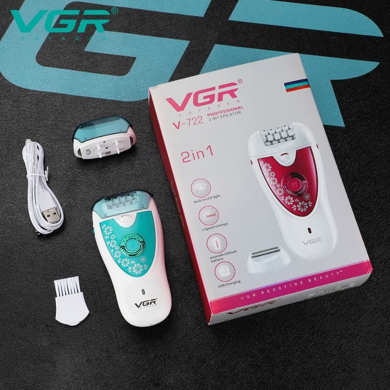VGR V‑722 هو جهاز إزالة الشعر الاحترافي للنساء من VGR — مزوّد بوظيفتي إزالة الشعر من الجذور (epilator) + حلاقة (shaver) في جهاز واحد، مما يوفّر لك تجربة إزالة شعر أكثر كفاءة وراحة مقارنة بالحلاقة التقليدية بالموس.