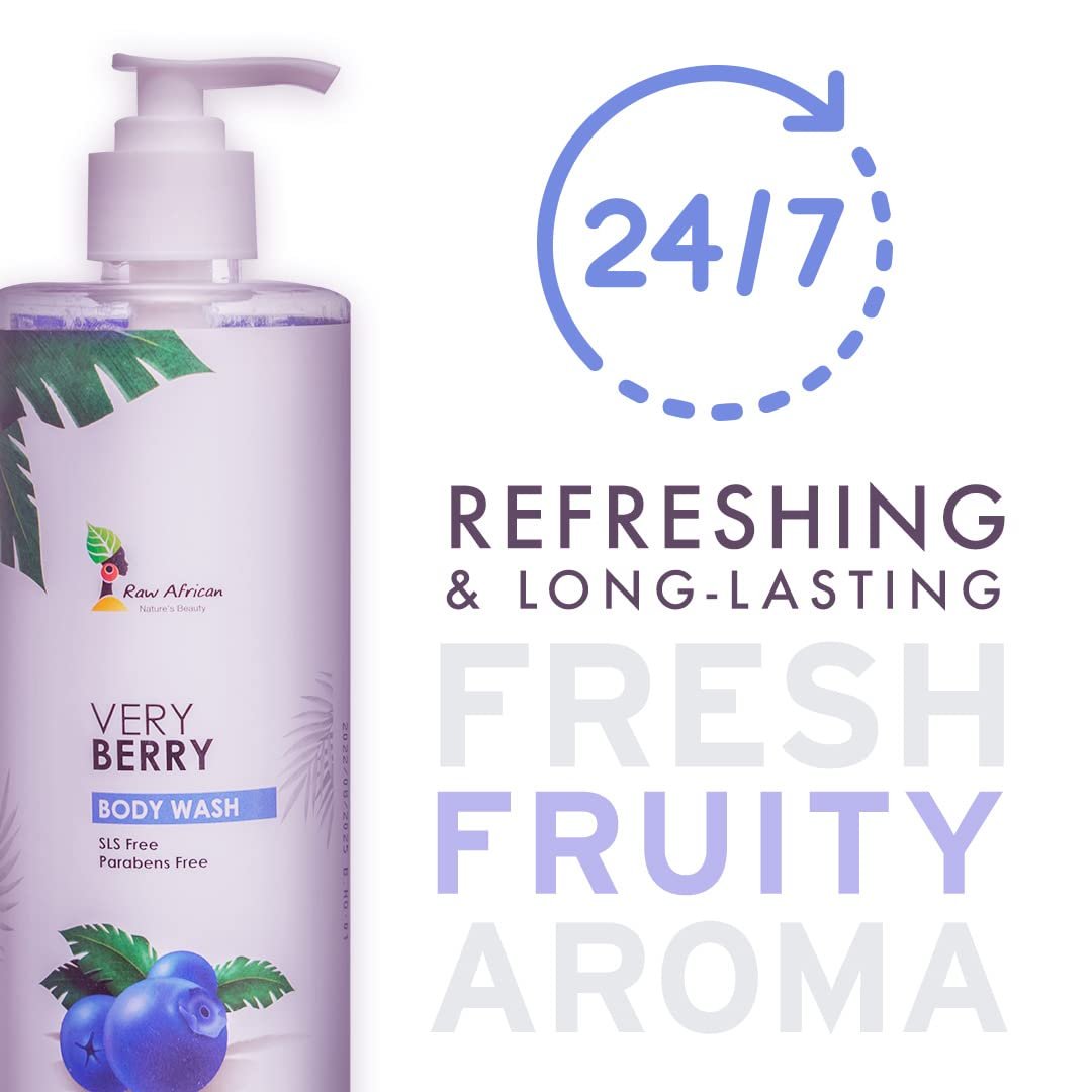 Raw African بودي ووش فيري بيري 500 مل هو جل استحمام غني برائحة الفواكه الحمراء المنعشة، يمنحك تنظيفًا عميقًا وترطيبًا للبشرة مع تجربة استحمام منعشة ومليئة بالحيوية.