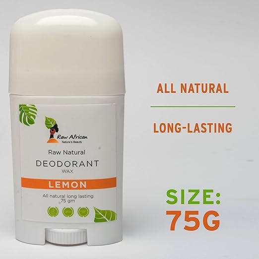 Raw African ستيك ليمون 75 جم هو بودر صلب منعش برائحة الليمون الطبيعية، مصمم للحفاظ على جفاف البشرة وحمايتها من الاحتكاك، مع ترك البشرة منتعشة برائحة حيوية طوال اليوم.
