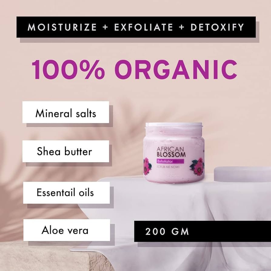 Raw African سكرب بلوسوم 200 جم هو مقشر للجسم غني بمكونات طبيعية، يساعد على إزالة الخلايا الميتة، تجديد البشرة، ومنحها نعومة وإشراقة صحية، مع رائحة زهرية منعشة تضفي شعورًا بالانتعاش والاسترخاء.
