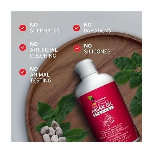Raw African شامبو أرغان 300 مل هو شامبو مغذي للشعر، غني بزيت الأرغان الطبيعي، مصمم لتنظيف الشعر بعمق، ترطيبه، وتقويته، ليترك الشعر ناعمًا، صحيًا، ولامعًا مع حماية من الجفاف والتقصف.