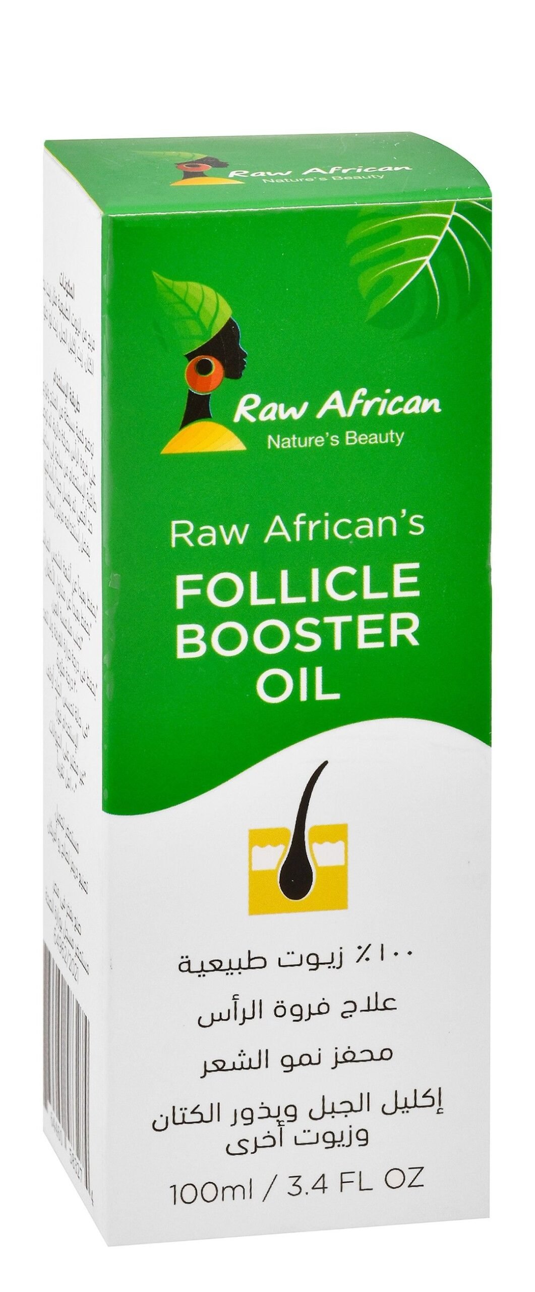Raw African فوليكال بوستر زيت 100 مل هو زيت مركز لعناية فروة الرأس وتعزيز صحة بصيلات الشعر، غني بالمكونات الطبيعية المغذية، يساعد على تقوية الشعر، تقليل التساقط، وتحسين كثافة الشعر وملمسه الصحي.