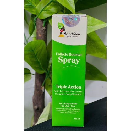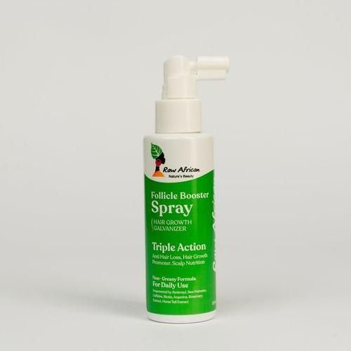 Raw African فوليكال بوستر سبراي 125 مل هو سبراي مركز للعناية بفروة الرأس والشعر، غني بالمكونات الطبيعية المغذية، يساعد على تقوية بصيلات الشعر، تعزيز نموه، وتحسين كثافة ولمعان الشعر بشكل صحي وطبيعي.