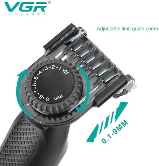 مشطّ قابل للتعديل: يسمح بتحديد أطوال مختلفة للتشذيب (مثلاً من 0.5 مم حتى 9 مم).