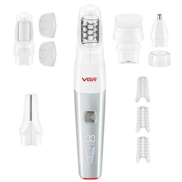 - مجموعة العناية النسائية VGR V-752 تعمل بتصميم 5 في 1 مع 5 رؤوس قابلة للتبديل: إزالة الشعر، مزيل الجلد الميت، تشذيب الجسم، تشذيب الأنف، وتنظيف الوجه