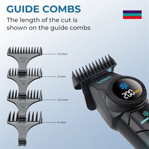 تحكم ذكي: تتيح لك شاشة LCD عرض حالة البطارية ودرجة حرارة الشفرة، بينما توفر 4 أمشاط توجيه (1.5/ 3/ 4.5 /6 مم) خيارات متنوعة لتصفيفات الشعر المختلفة.