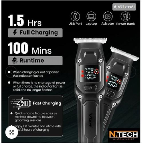 ماكينة قص الشعر VGR V-964 هي ماكينة احترافية قابلة للشحن تعمل بالبطارية مخصصة للرجال، تتميز بشفرة من الفولاذ المقاوم للصدأ ذات غطاء تيتانيوم لضمان المتانة والحدة. توفر 200 دقيقة من التشغيل بعد شحن لمدة 3 ساعات، وتعمل ببطارية الليثيوم.