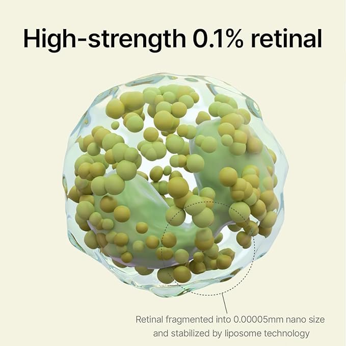 سيروم ليلي مركز يحتوي على 0.1% Retinal (شكل متقدّم من الريتينول أقوى وأكثر فعالية في تحسين تجاعيد البشرة وتجديد الخلايا).