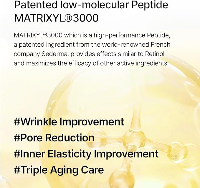 يحتوي على 3% Matrixyl® 3000 (مزيج من الببتيدات المحفّزة لإنتاج الكولاجين) لتحسين المرونة وتقليل الخطوط الدقيقة.