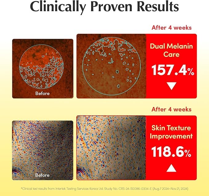 ✔️ تفتيح وتوحيد لون البشرة وتقليل مظهر البقع الداكنة والتصبغات بفضل مركبات مضادة للأكسدة مثل فيتامين C ومكونات التفتيح.
