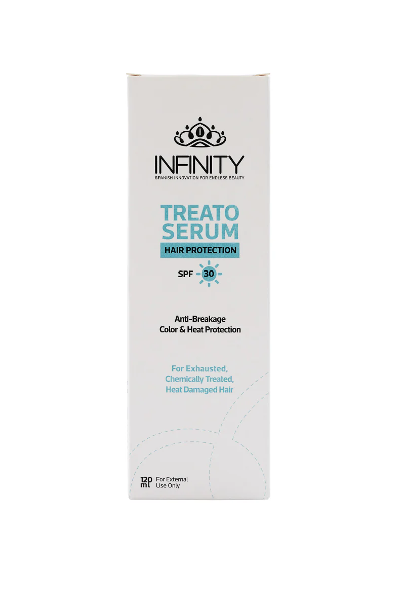 Infinity Treato Serum SPF30 80 ml هو سيروم شعر بخفة عالية وله عامل حماية من الشمس SPF 30 صُمّم للحماية والعناية اليوميّة بالشعر من أضرار الشمس والعوامل الخارجية مع ترطيب وتغذية الخصلات.
