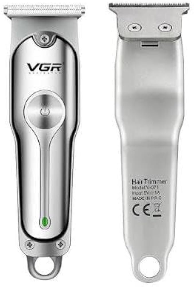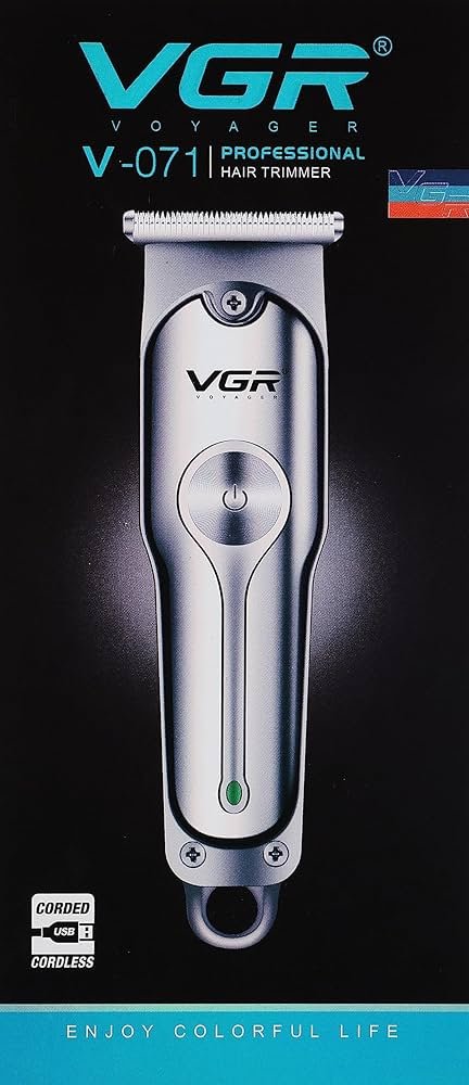 ماكينة الحلاقة VGR 071 باللون الفضي تجمع بين الأداء القوي والتصميم الأنيق، لتمنحك حلاقة دقيقة وسلسة في المنزل. مزودة بشفرات حادة عالية الجودة تضمن قصًا متساويًا بدون شد أو تهيج، مع محرك قوي مناسب للاستخدام اليومي.