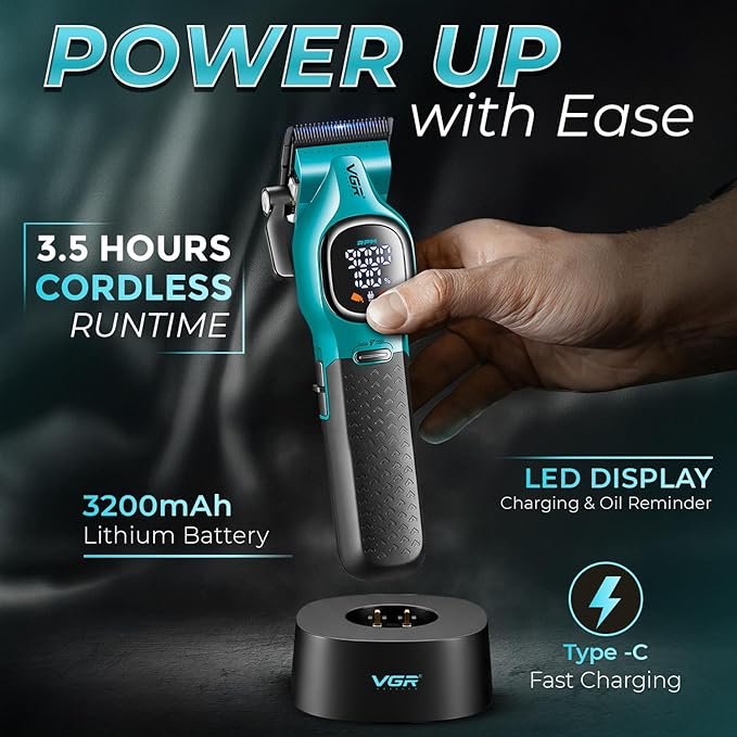 ماكينة VGR V‑886C هي ماكينة حلاقة وقص شعر احترافية قابلة لإعادة الشحن، مناسبة للرجال للاستخدام المنزلي أو في صالونات التجميل، وتتميز بأداء قوي وبطارية طويلة التشغيل وتصميم عملي ومتكامل.