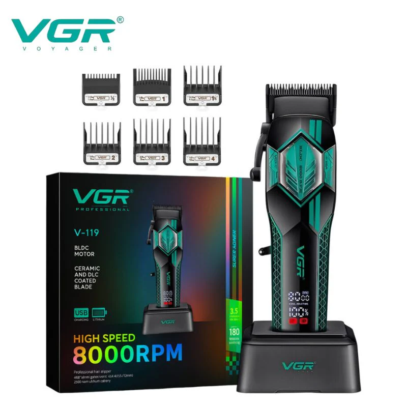 ماكينة VGR V-119 تعتبر من الموديلات القوية في الفئة المتوسطة الاحترافية، وبتجمع بين الأداء العالي والسعر المناسب—مناسبة جدًا للبيت أو للحلاق المبتدئ.